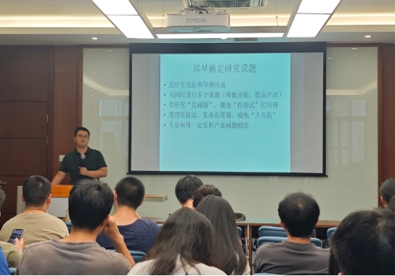 围绕“如何成为一名优秀的研究生”这一主题,邓院长要求同学们主动树立科技报国远大理想,不断强化创新意识,逐步实现从 “学习知识”到 “创造知识”的转变,从被动参与研究到主动探索规律的转变,助力科技攻关,在复兴民族中誓作前锋。