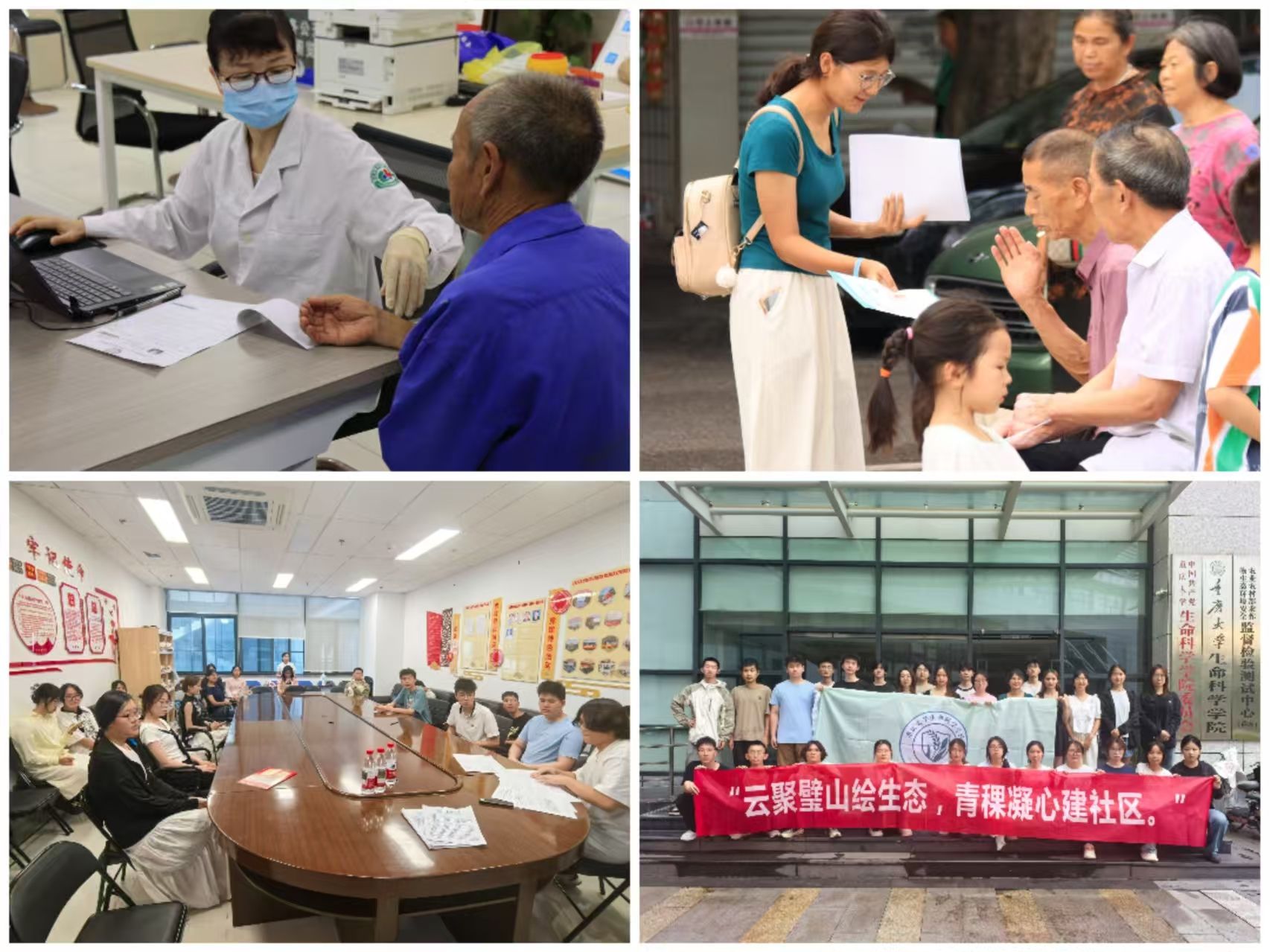 调研组聚焦绿色发展与生态保护,开展生态治理调研和基层需求深度挖掘等。通过基层走访、问卷调研等方式,系统收集垃圾分类现状与居民环保素养水平数据,依托学校实验室开展璧南河水质量检测,根据检测结果针对性地开展环保知识宣教,倡导共建绿色璧山。