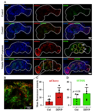 嗅觉系统具有高度的灵敏性,在昆虫和动物的食物定位、繁殖行为和避免有害气味等发挥着重要作用。同时,嗅觉易受到有害气味物质的干扰,而影响正常的生理功能。挥发性杀虫剂作为空气中有害物质(volatile organic compounds, VOCs)的重要来源之一,流行病学观察发现其对生产和使用的从业人员带来了严重的嗅觉损伤,并可能诱发神经退行性疾病,但对分子机制了解甚少。昆虫和哺乳动物的嗅觉系统具有较高的相似性,信号转导也高度保守。以昆虫为模式研究挥发性杀虫剂引起的嗅觉障碍和分子机制,有助于理解VOCs对人类嗅觉的损伤机制。